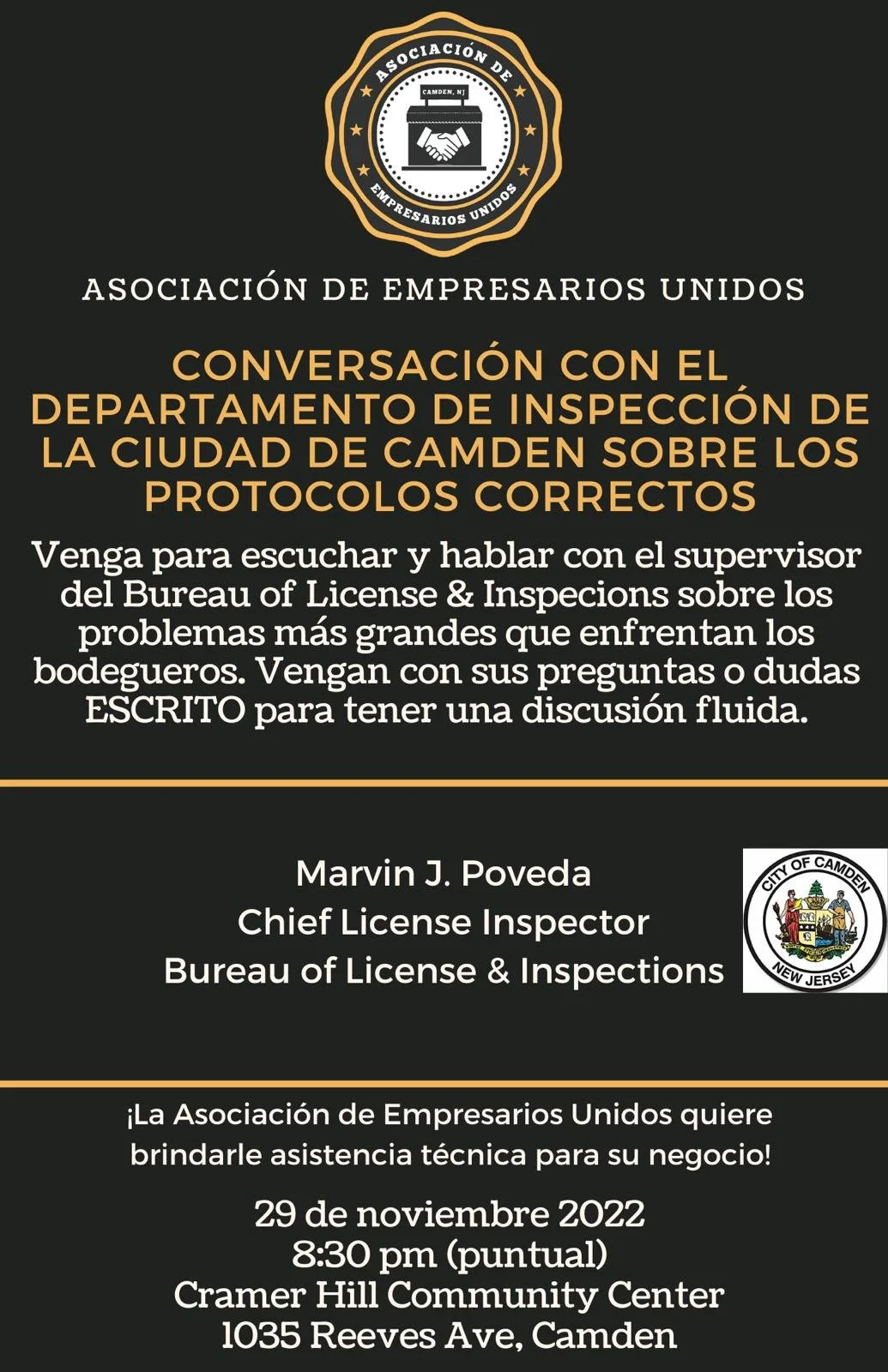 An opportunity for you to receive a certificate from the Camden County Health Department and clarify questions or concerns you have had about health inspections, including whether and may not be sold (water ice, ice, etc.).
